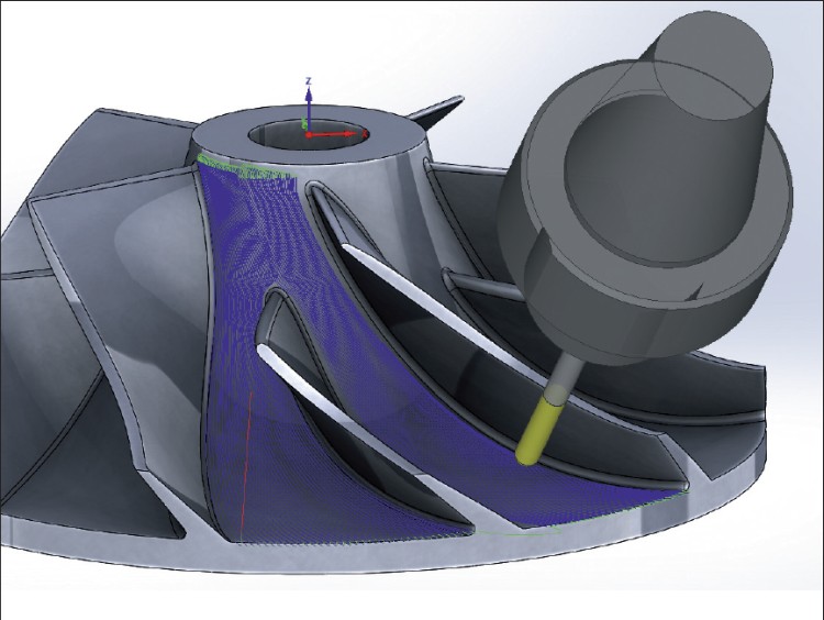 V nástrojích pro pětiosé frézování přibyla jednoduchá, ale užitečná funkce pro pětiosý ořez – snadná definice z řídicí křivky a směrových vektorů. Funkce je výborně použitelná v aplikaci na ořezávacích pětiosých strojích, často používaných u laminátů a vakuově tvářených desek. Víceosý arzenál se rozšířil o dvě speciální funkce pro obrábění lopatkových kol a vnitřních tvarových kanálů. Nejedná se jen o úpravu stávajících funkcí, ale o nové produkty vzniklé plánovitým vývojem. Obě funkce jsou zaměřené velmi úzce na svou typovou úlohu a značně zkvalitňují a urychlují programování těchto náročných tvarů. Použití je opravdu extrémně snadné, takže pokud se uživatel s touto úlohou setkává opakovaně, jsou tyto nové funkce téměř nutné.