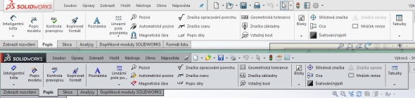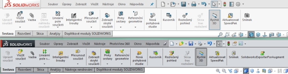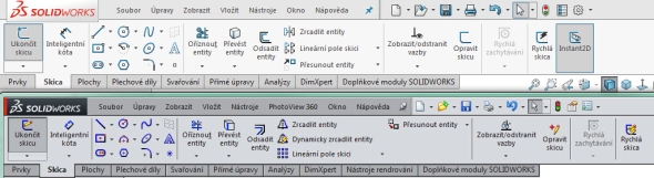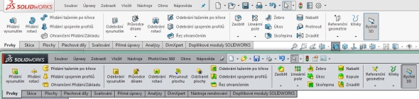 Moderní vzhled můžete porovnat na tlačítkách umístěných v CommanManageru (SolidWorks 2016 je na obrázcích nahoře).