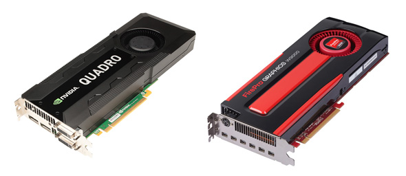 Recenzent Greg Corke využil umělých benchmarků Specapc, které simulují různé grafické módy softwarů SolidWorks 2013 a PTC Creo 2.0, jež nechal pracovat na čtyř grafických kartách značky ATI a čtyř značky Nvidia.