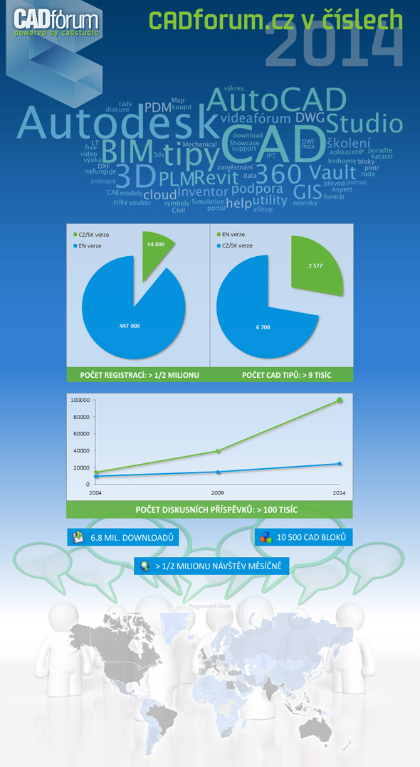 Uživatelé najdou na CADforum.cz tisíce tipů a triků k CAD aplikacím, softwarové doplňky pak zaznamenaly již 6,8 milionu stažení (další detaily najdete v přiložené infografice).