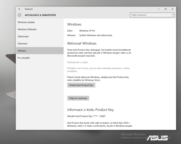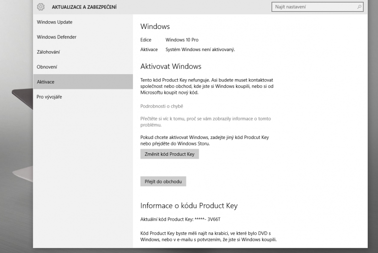 Někdy se však stane, že i když vše uděláte správně, nové Windows vás vyzývají k provedení aktivace, ovšem ta vám není umožňěna. Panel „Aktualizace a zabezpečení“ hlásí: „Tento kód Product Key nefunguje. Asi budete muset kontaktovat společnost nebo obchod, kde jste si Windows koupili, nebo si od Microsoftu koupit nový kód.“