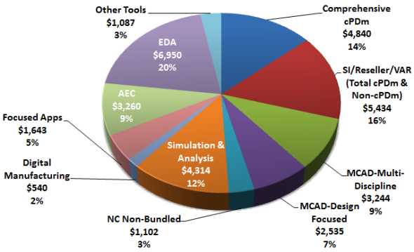 Podle zjištění a odhadů CIMdata bylo do PLM softwaru ze strany zákazníků v roce 2013 vloženo kolem 35 miliard amerických dolarů, přičemž tento trh roste mnohem pomaleji, než v letech předchozích. Například tržby za strojírenské CAD systémy, jež představují 16 % uvedeného objemu, jsou meziročně víceméně stejné. Neoslní už ani simulační aplikace, dosud nejrychleji rostoucí segment, jehož současné tempo zpomalilo na 7,1 %.