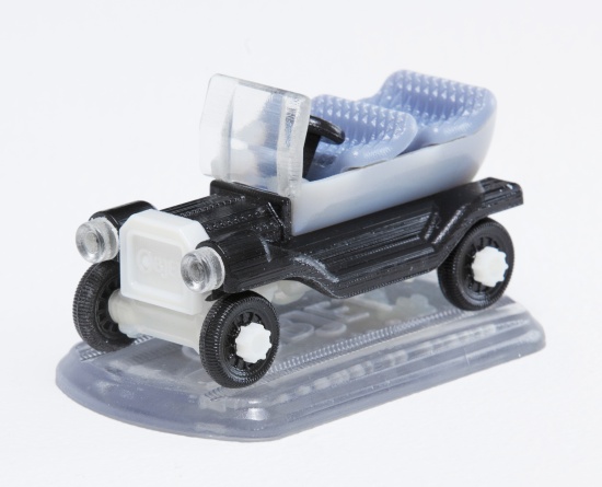 Ukázka výstupu z tiskárny — model skládaný ze sedmi různých materiálů