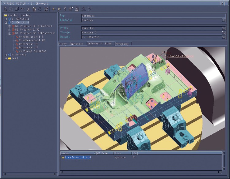 Celý výrobní postup obsahující více jak 250 NC programů je strukturován ve Správci výrobního postupu. Vzhledem k tomu, že obsahuje všechny informace o použitých nástrojích, strategiích, parametrech atd., je snadné provádět potřebné změny a úpravy. Mimo to je možné uložit celý postup ve formě šablony a použít v dalších projektech. Vzhledem k plné integraci simulátoru ve správci výrobního postupu je snadné kompletně zkontrolovat obrobek na kolize ve virtuálním stroji, a v případě potřeby provádět optimalizace celého procesu.
