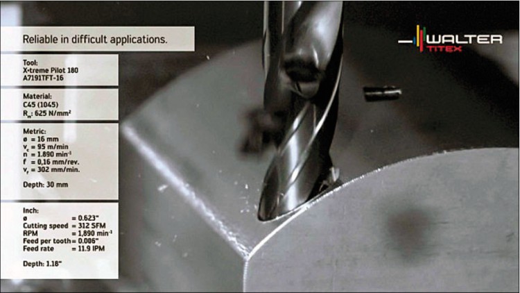 Walter Tools se mimořádně věnuje vývoji vrtání hlubokých otvorů mnoho let. Ty se vyskytují převážně při výrobě forem, zápustek a klikových hřídelí. Řadu vrtacích nástrojů Walter Titex rozšířila o nástroje pro vrtání hlubokých otvorů malého průměru s vyšší produktivitou a vysokou pevností. Vrták Walter Titex Xtreme 180 ze slinutého karbidu, s kanálky pro vnitřní vedení procesní kapaliny a úhlem nastavení hlavního ostří 180 stupňů, bude uveden na trh s rozsahem velikosti průměru od 3 do 20 mm.