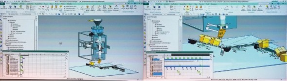 Na konferenci Siemens PLM Connection v Berlíně byla takto promítnuta simulace z linky na balení gumových medvídků včetně ilustrativní výrobní chyby, po které začaly bedny s balíčky cukrovinek přepadávat přes výrobní pás a celý proces se kvůli konstrukční chybě pro názornost schválně pokazil. Jak již bylo napsáno, takovou simulaci je možno provést přímo v prostředí CAD systému, v němž vznikají konstrukční data.