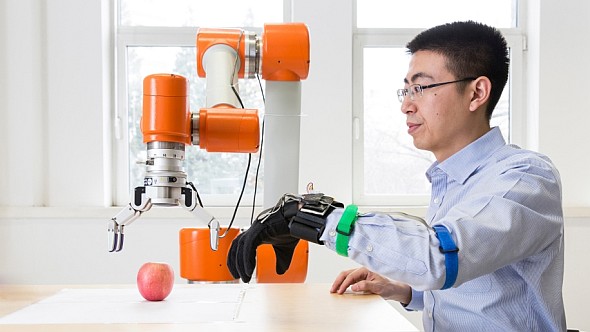 Vzájemnou spolupráci člověka s robotem v průmyslových provozech by měla vylepšit datová rukavice. Jejím úkolem je přesně zachytit a přenést pohyby, gesta a změny tlaku z lidských rukou do robota. Ten by je mohl kopírovat a vykonávat tak i velmi složité příkazy.