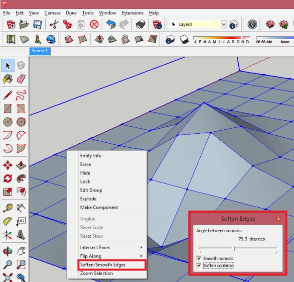 Tip: Vymodelované objekty vyhladíte funkcí Soften/Smoothen Edges (Změkčit/Vyhladit hrany). Spustíte ji kliknutím na příslušný objekt (terén) pravým tlačítkem. V nastavení je pak třeba zadat požadované hodnoty.