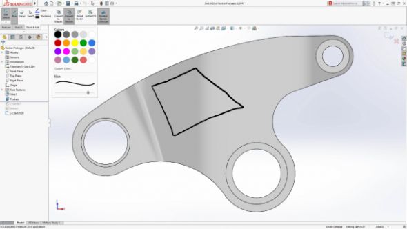 V rámci sehrané parodie SolidWorks next TopModeler představili vývojáři SolidWorksu zajímavé novinky, které budou zařazeny do SolidWorksu 2018. Jednou z nich je i možnost skicování od ruky prostřednictvím pera na dotykovém zařízení Microsoft Surface.