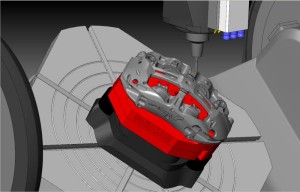 Jeden z velmi pozoruhodných brzdových třmenů  použitých na závodních vozech byl firmou Alcon uvolněn pro prezentace výkonu SolidCAMu a strojů Hermle na letošním MSV 2011 v Brně.