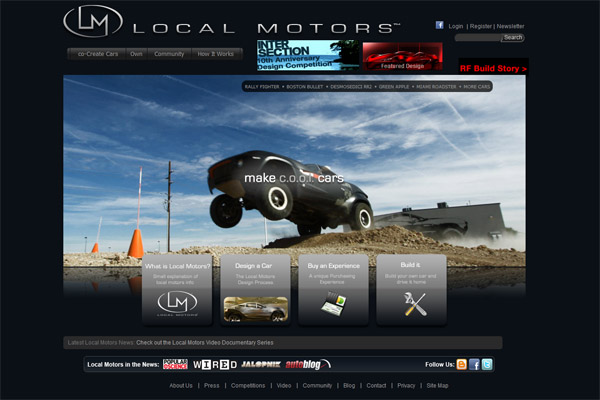 Web www.local-motors.com láká automobilové nadšence z celého světa do komunity,
