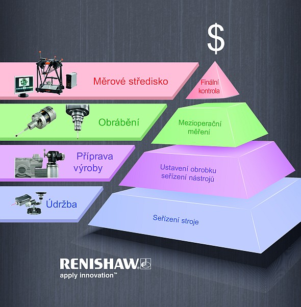 Společnost Renishaw má mnohaleté zkušenosti s optimalizací výrobních procesů a zaváděním inovací, které vedou k vyšší efektivitě. Stejné cíle sleduje i koncept Pyramidy produktivní výroby – vyrábět co nejrychleji, nejpřesněji a současně optimalizovat výrobní náklady.