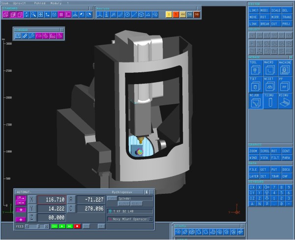 Modul Tebis Simulátor nabízí kompletní řešení celého stroje, a to nejen ve fázi kontroly vypočtených drah, ale i před samotným započetím programování.