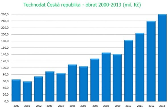 Souhrnný obrat skupiny Technodat od roku 2009 nepřetržitě roste. V roce 2013 dosáhl k částce 260 milionů korun, což znamená takřka zdvojnásobení výkonu firmy během posledních pěti let.