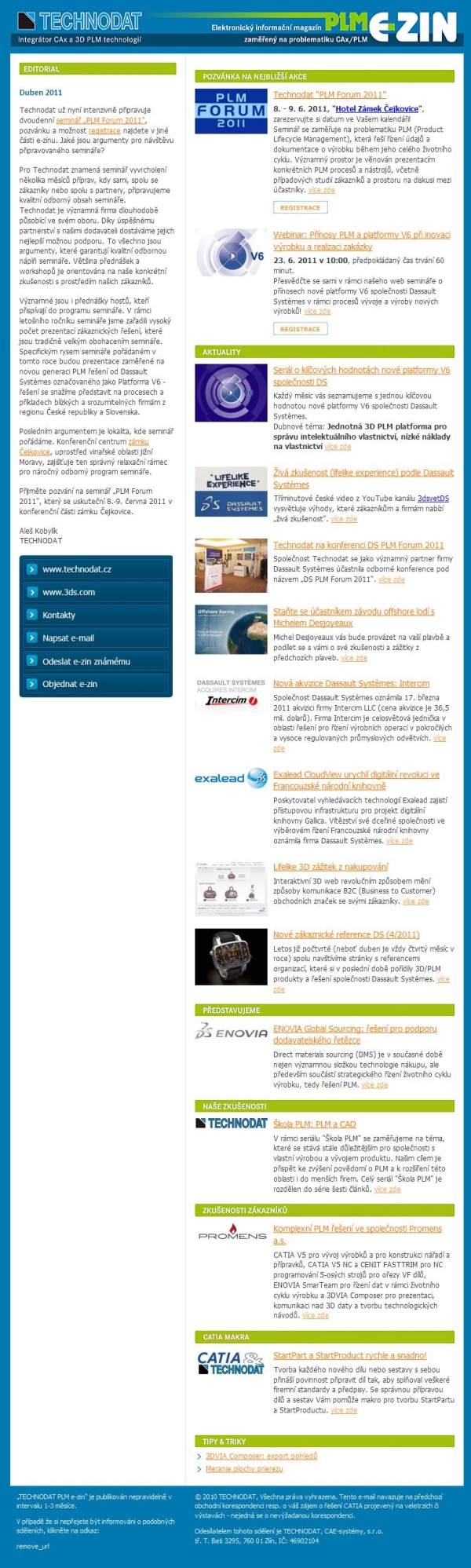 Strukturu a obsah měsíčníku Technodat PLM e-zin nejlépe posoudíte na ukázce aktuálního dubnového vydání v podobě, v jaké je distribuován do emailových klientů.
