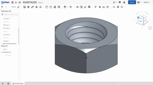 Jak vymodelovat matici včetně závitu? Podívejte na návod popisující postup modelování krok za krokem v řešení Onshape.