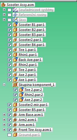 Referenční roviny lze jednotlivě zapínat a vypínat rozbalením stromu pomocí ikony + u větve referenční roviny ve stromu modelu. Také můžete pracovat se všemi rovinami najednou pomocí zaškrtávacího políčka skupiny.