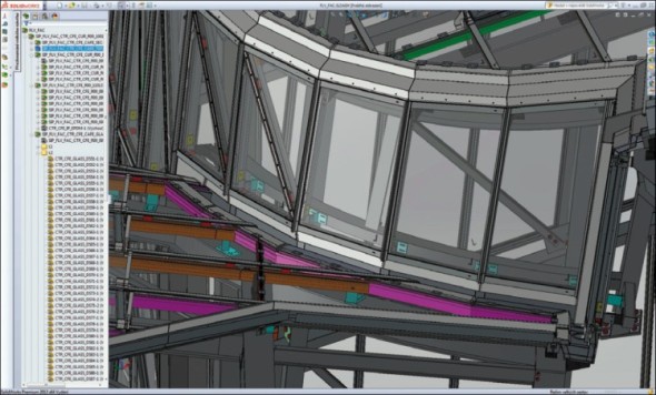 Jeho kolega Aleš Votruba dodává: „Zcela zásadní byl v tomto projektu způsob spolupráce, protože celý objekt vznikal jako virtuální staveniště ve 3D softwaru Digital Project, který sloužil jako komunikační rozhraní mezi dodavateli. Všichni vytvářeli 3D modely, vzájemně je navazovali a ve spolupráci s kontrolním oddělením řešili požadované změny. Při návrhu fasád jsme se potýkali s extrémní složitostí mnoha tisíc komponent, které bylo nutno nejen navrhnout, ale taky dodat v takovém stavu, aby bylo možné na stavbě tyto unikátní prvky správně zorientovat a použít. Takovou zakázku by bez 3D softwaru, jako je SolidWorks, nešlo vůbec realizovat už z její prosté podstaty.“