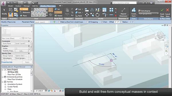 Upravovaný objekt vždy nabídne úchyty k rychlým změnám geometrie, přičemž se průběžně mění nabídka panelu Vlastnosti, kde lze veškeré změny řídit nastavením zcela přesných hodnot. Ačkoliv se Project Vasari jeví stejně pohotově a pohodlně jako plošný modelář, stromová struktura v paletě Project Browser (Průzkumník projektu), obsahující například pohledy nebo rodiny prvků, je příbuzná té, kterou známe z parametrického systému Revit.