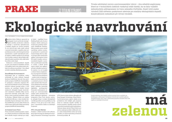 Titulním tématem čísla je ekologické navrhování. Poukážeme na technologie, díky kterým je vývoj výrobků s ohledem na životní prostředí snazší. Součástí tématu je též případová studie ze společnosti Green Ocean Energy, která navrhuje unikátní vodní elektrárny v softwaru Autodesk Inventor. Tento systém, stejně jako mnohé další aplikace od firmy Autodesk, nyní mohou začínající firmy získat za velmi zvýhodněných podmínek v rámci obchodního programu Clean Tech. Také jemu se věnujeme v samostatném příspěvku.