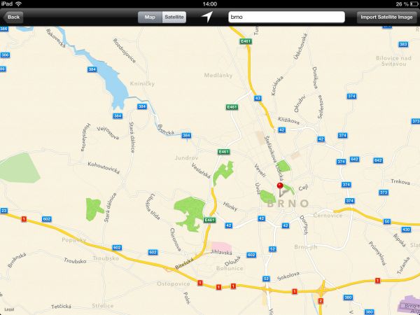 Tyto můžete umístit buď do prázdného modelového prostředí, anebo přímo na fotografickou mapu území, na němž má být objekt postaven. Aplikace FormIt vám dokáže pomoci i s určením vaší polohy, pokud máte tuto funkci na iPadu povolenu. Jestliže si chráníte soukromí a neradi dovolujete mobilním zařízením, aby vás „sledovala“ na každém kroku, máte pak možnost načíst mapu ručně a místo zvolit sami.