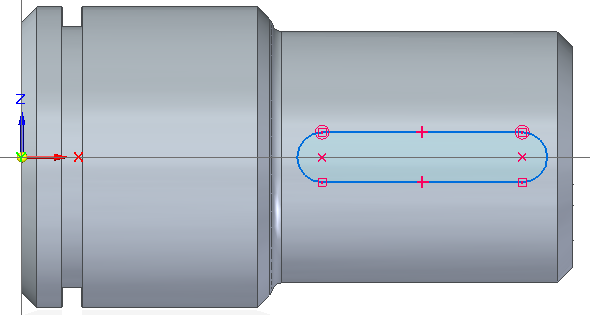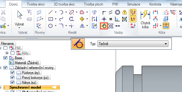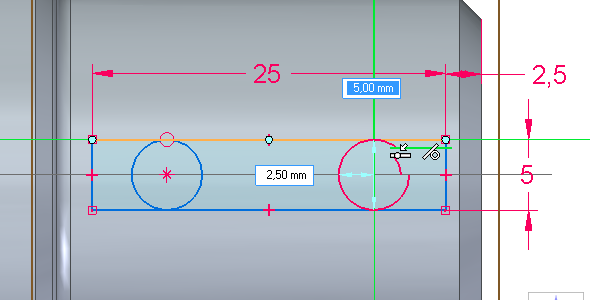 Nastavte tečné vazby kružnicím k obdélníku, tím určíte přesné zadání drážky pro pero.