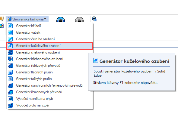 Strojírenská knihovna je funkce, která obsahuje 11 generátorů ke snadnému vytvoření hřídelí, vaček, ozubení, převodů a pružin. V návodu si prakticky vyzkoušíme generátor kuželového ozubení a funkci pro základní možnost rozpohybování ozubení.