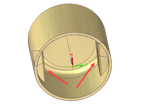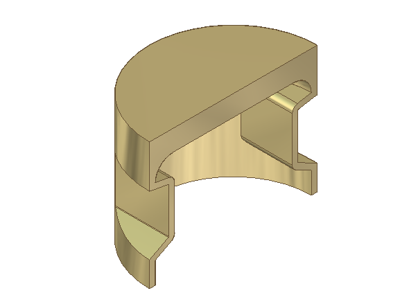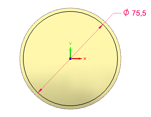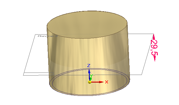 Otevřete si uložený dokument pist.par vymodelovaný dle volně dostupného návoduV rovině XY (půdorys) nakreslete příkazem Kružnice středem kružnici o velikosti 75,5 mm a skicu zavřeteVyberte příkaz Vyříznout, označte nakreslenou skicu a vyřízněte do hloubky 51,5 mmFunkcí Zaoblení zaoblete vnitřní hranu pístu na velikost 8,5 mmZe záložky Domů→ Roviny vyberte funkci Rovnoběžně a vytvořte novou rovinu s odsazením od roviny XY o velikosti 29,5 mm. Tato rovina bude vymezovat boční vybráníNa rovině pravého bokorysu (YZ) vytvořte skicu a nakreslete od ruky tvar, který je znázorněn na obrázku