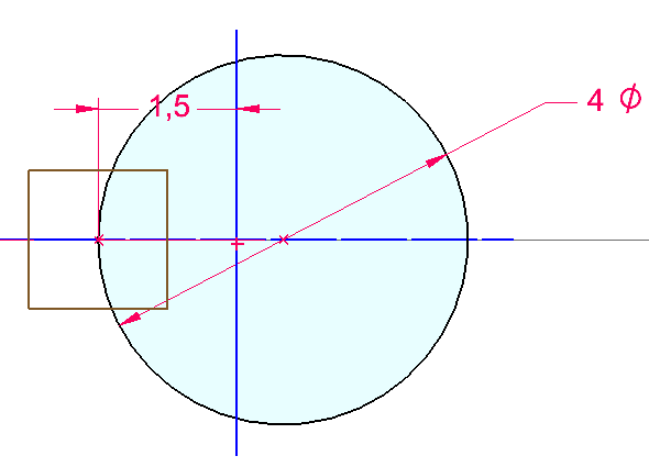 Zakótujte kružnici a čáru dle obrázku, případně použijte vazbu Připojit pro definování průniku kružnice s koncovým bodem čáry.