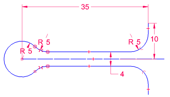 Zakótujte skicu dle obrázku, tím je vytvořena trajektorie pro použití příkazu tažení.